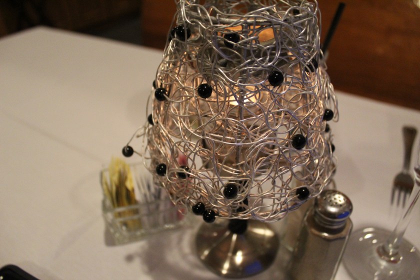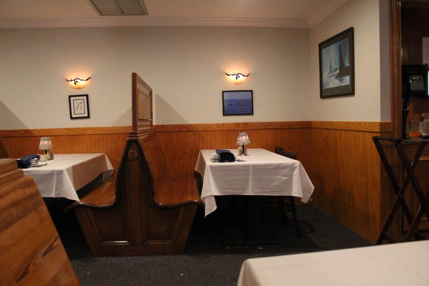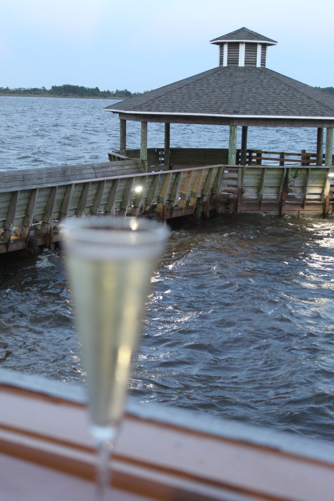 Tale of a Whale, owned by Dan and Kathy Bibey. It is conveniently located on Highway 158 S along the bay, 12 minutes from our hotel. At first glance of the gray building it does not seem like much, but it is not what is on the outside that matters it is what is on the inside that counts. Tale of a Whale does not disappoint with its beautiful decor on the inside. They have both nice wooden booths and open tables. They can also accommodate large parties. As soon as we arrived it appeared very busy, but we were seated right away. Our table was a booth along the large bay window. The view of the water and outside gazebo were beautiful and added to the already romantic atmosphere.