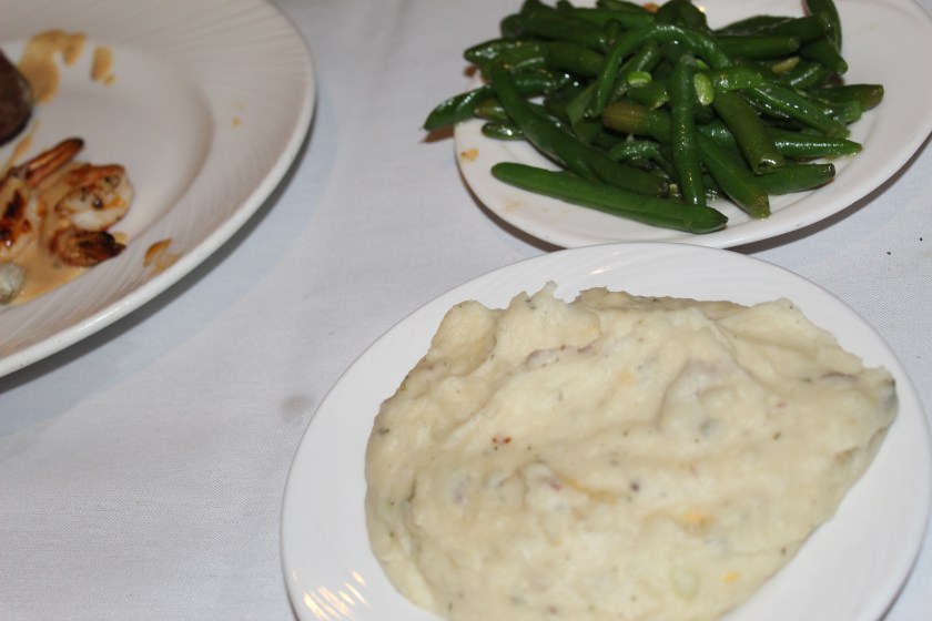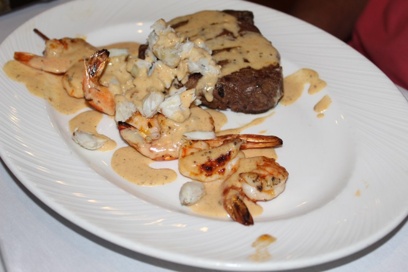 My Tale of a Whale Grill was just as special. The dinner initially comes with a 5oz filet mignon, skewered shrimp, topped with crab meat and topped with a cajun cream sauce. The sides were sauteed green beans and creamy mash potatoes. The great thing about this dish is you have options to upgrade for a nominal fee to a 8oz filet mignon, 12oz pork chop, or 12oz NY strip. I chose to upgrade to the 8oz filet. The filet was perfectly cooked to medium, and was oh so tender. The shrimp were cooked perfectly. The cajun cream sauce added that extra pop to the plate and left me wanting more when it was over.